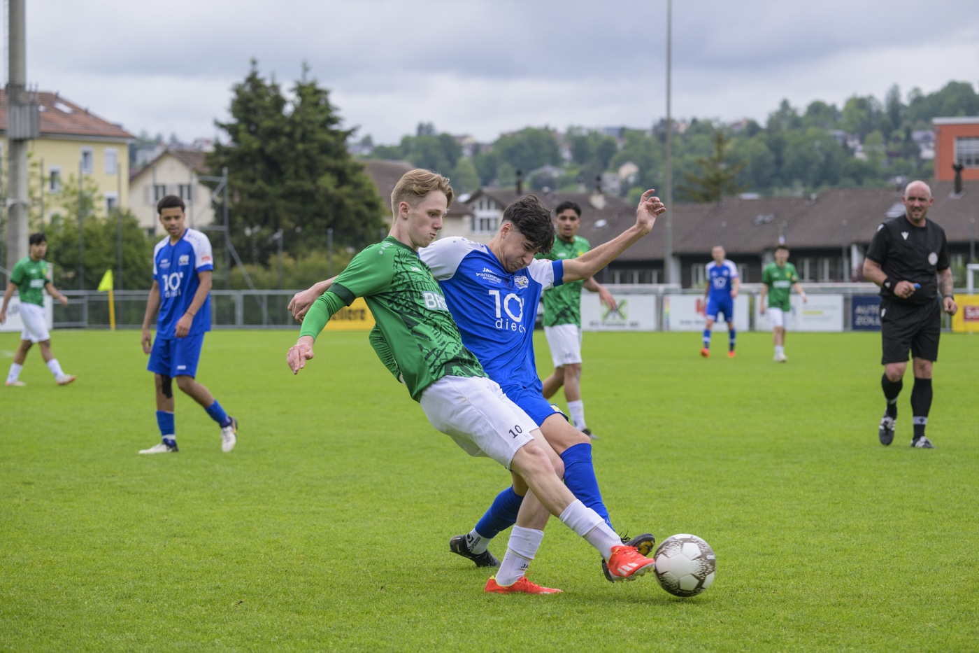 Mit diesem „Alles oder Nichts“-Ansatz gingen die Kronen schnörkellos, zielstrebig und vor allem effizient in die Partie. Bereits nach drei Minuten erzielte Topscorer Mohd Razai nach einem sehenswerten Zuspiel von Kilian Petuck die frühe 1:0-Führung. Nach diesem Traumstart hätten die Brühler ihre Führung ausbauen können, doch Kokob Kelati, Maxim Good und Veron Svarqa scheiterten entweder am Pfosten oder am Gossauer Torhüter Kebron Fanus. Fanus zeigte an diesem Sonntagnachmittag eine herausragende Leistung, ebenso wie Christoph Gschwend im Tor des SC Brühl. Gschwend parierte zweimal spektakulär und hielt so die knappe Führung bis zur Pause fest.
